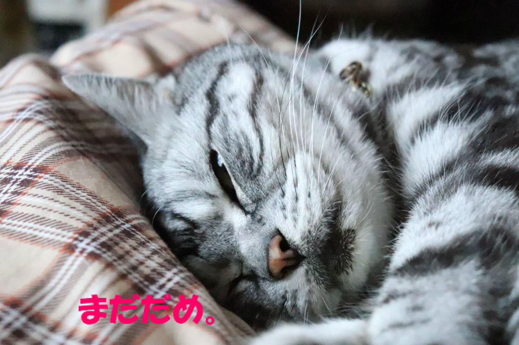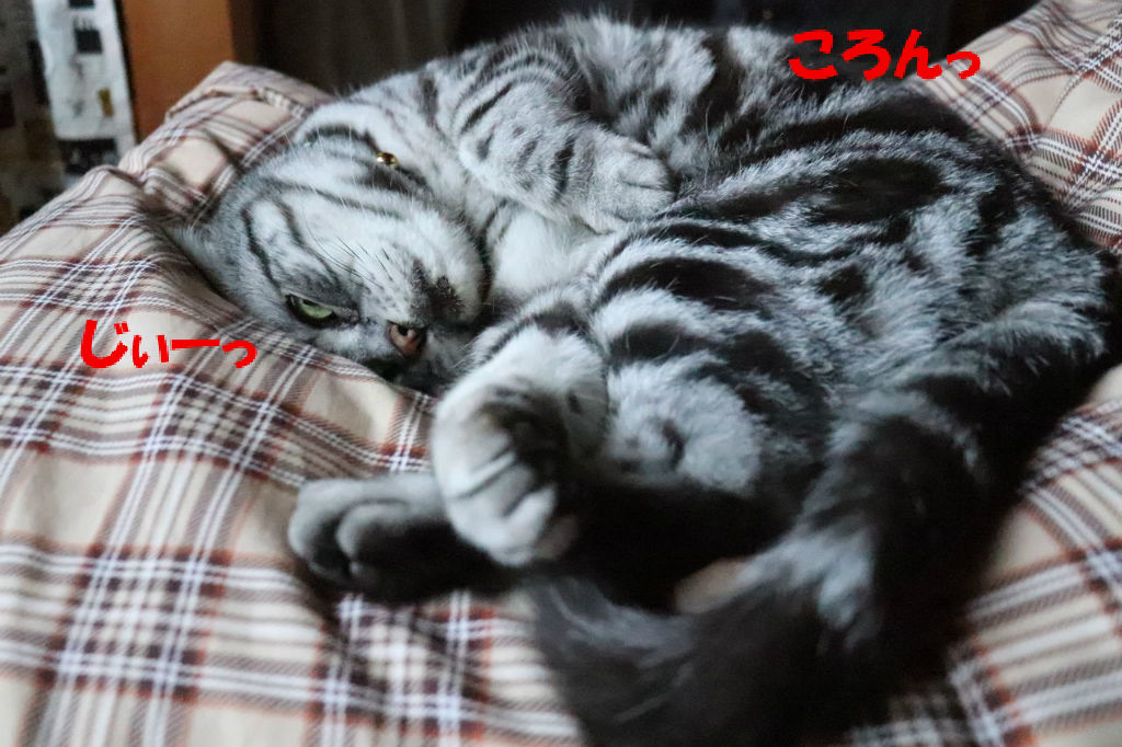 寝てるように見えるけど目ぇ開いてんの(笑)。