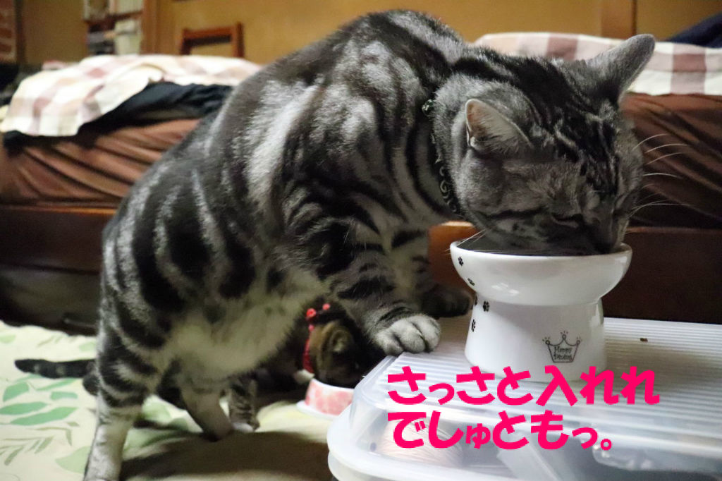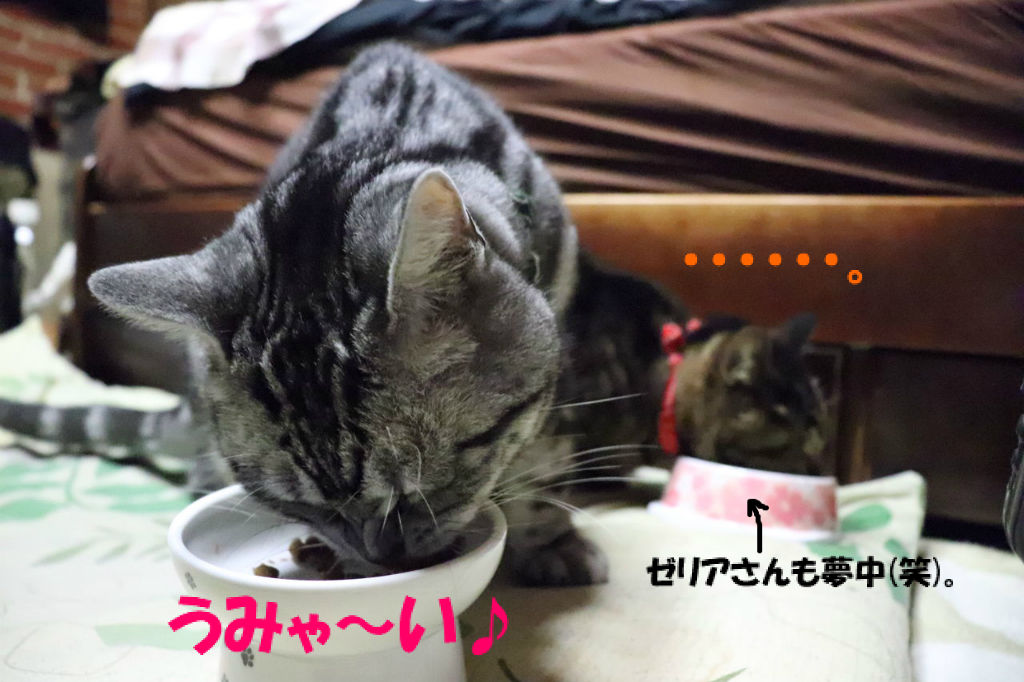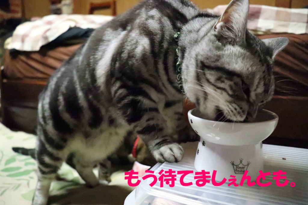 器に入れてる最中から喰いつく梵。